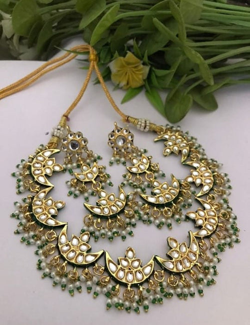 Pearl Teardrop Polki Kundan Necklace Set -